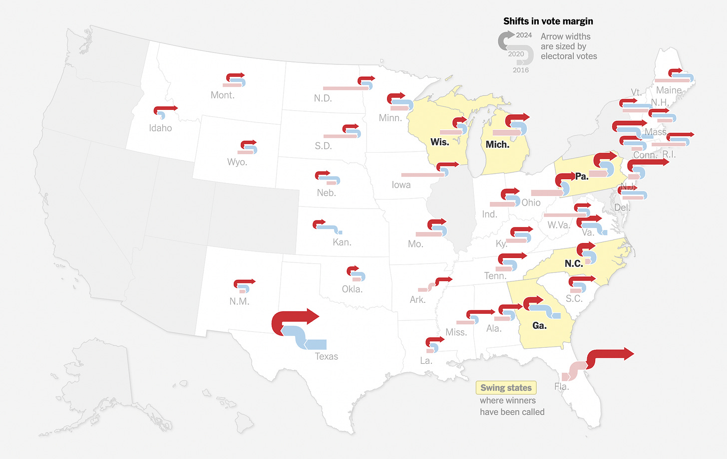 This election saw notable shifts in traditional voting patterns. Areas previously viewed as "solid blue" saw decreases in Democratic support, particularly in suburban and exurban counties. The rural-urban divide is more pronounced than ever, with Trump securing a significant base outside metropolitan hubs. Especially, many young men voted for Trump, including many Latinos and men from the Black community. According to BBC, also 64% of the Native Americans and the Amish voted for Trump in the 2024 presidential election. This for a person like Trump, who had to hear quite the banter all the time, is a pretty big deal!