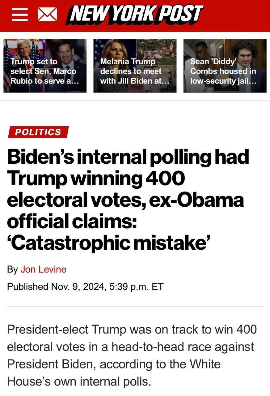Firstly, the Polls had suggested a tight race, with Trump and his Democratic opponent locked in a near-even split of voter intentions. Despite high anticipation around early polling data, Trump's support was reliably strong in rural and suburban areas-a possible echo of the "silent majority" that helped carry him to victory in 2016, and also now in 2024. Evidently, Trump could have won even with a higher score. This was according to Biden's internal polling, which had Trump winning 400 electoral votes.